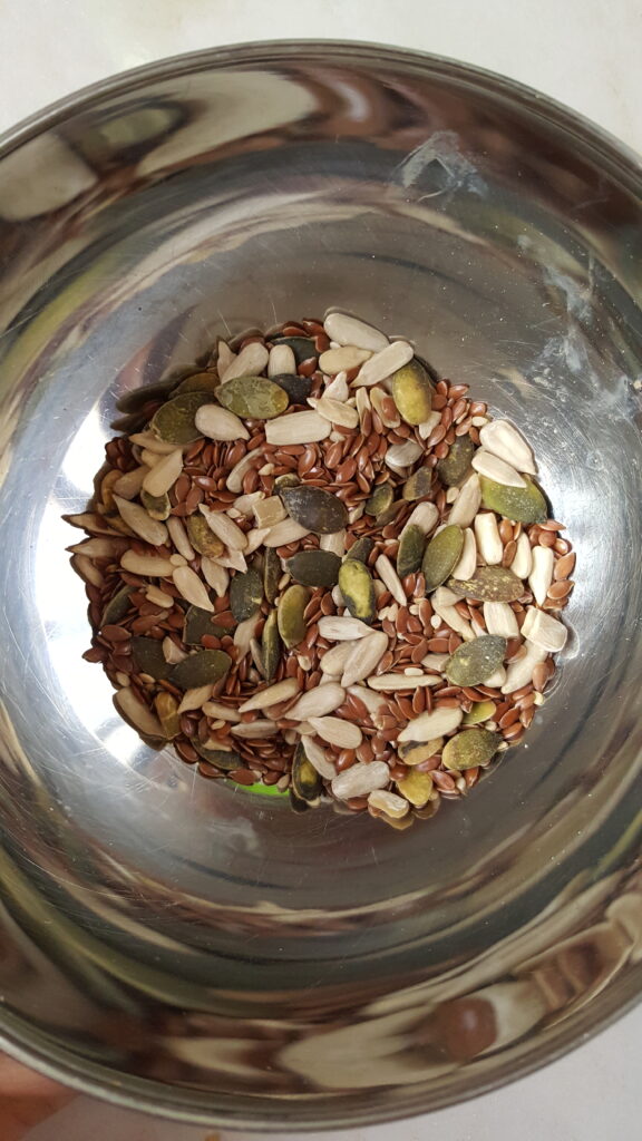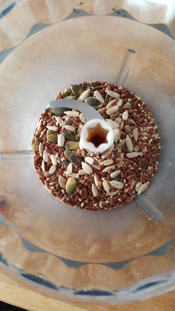 - Trita sempre 30 g di semi misti fino a ottenere una farina.