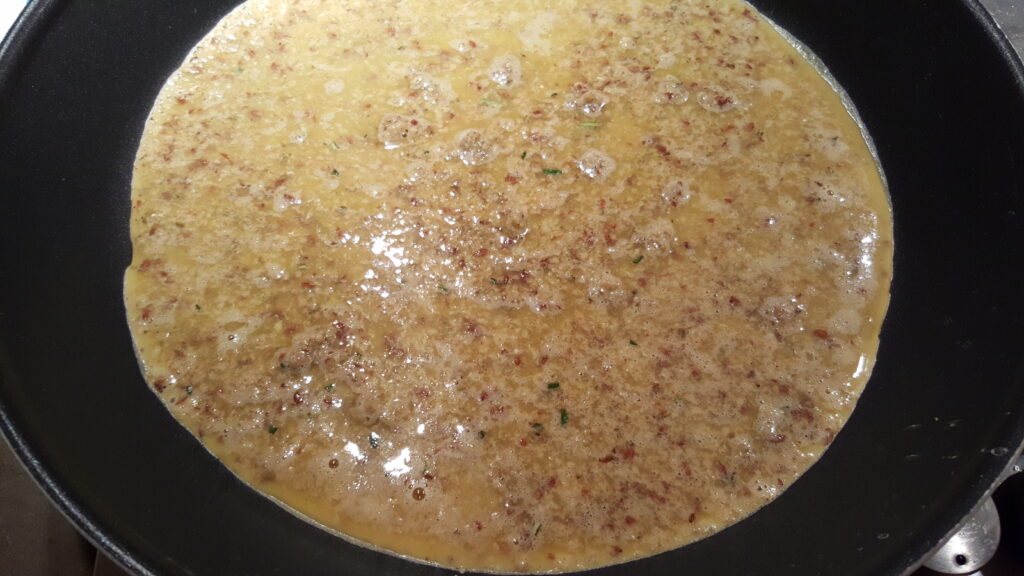 - Sbatti l’uovo in una ciotola, aggiungi sale, pepe ed erbe aromatiche.