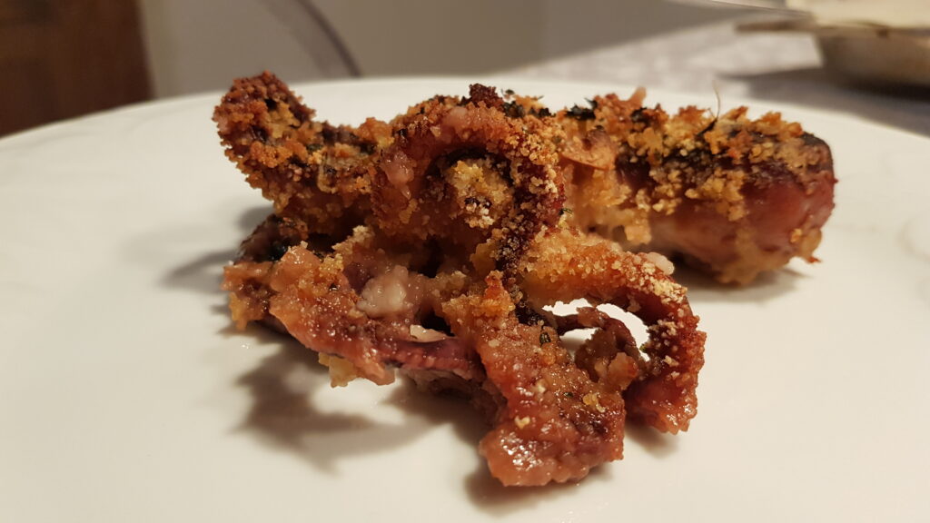 Pulite accuratamente i moscardini eliminando occhi, becco e interiora, quindi sciacquateli bene sotto l’acqua corrente. In una ciotola preparate un trito profumato con pangrattato, prezzemolo, aglio e un filo di olio extravergine d’oliva. Mescolatevi i moscardini in modo che si rivestano uniformemente della panatura.